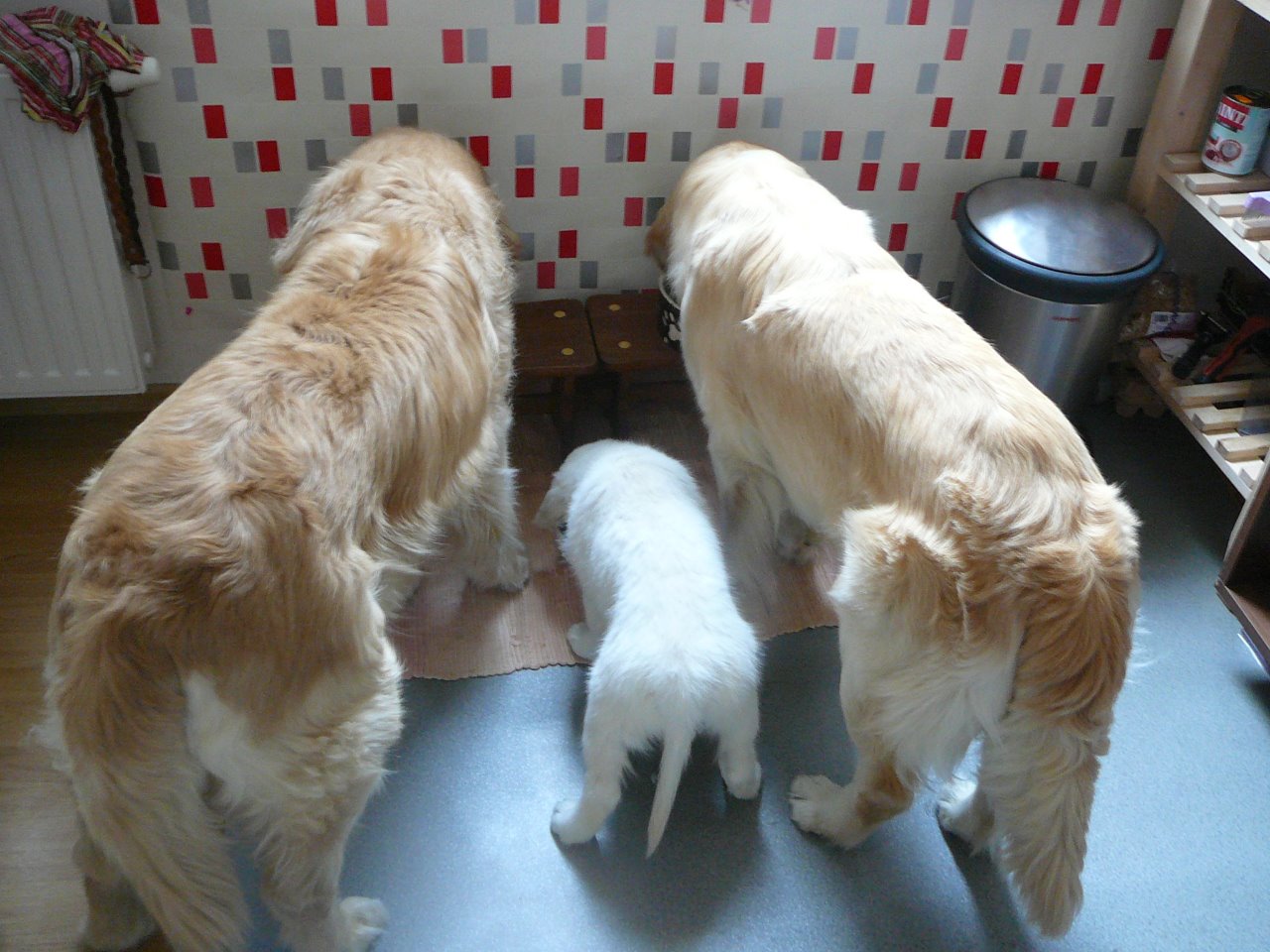 A protože jsme se s Baddíkem začali více věnovat canisterapii, padlo rozhodnutí pořídit si fenečku zlatého retrievera s PP, aby si Baddík od dětí občas odpočinul :). A tak jsme opět hledali, teď už cíleně štěňátko z malé chs, kde budou mít oba rodiče lovecké zkoušky, a samozřejmě také canisterapeutické zkoušky. Volba padla na chs Iceworld legend, opět jsme si jeli pro poslední štěňátko, opět mělo černý obojek, akorát tentokrát jsme jeli opravdu daleko, až do Mostu. Prostě Ellinka na nás čekala, byla nám souzena.